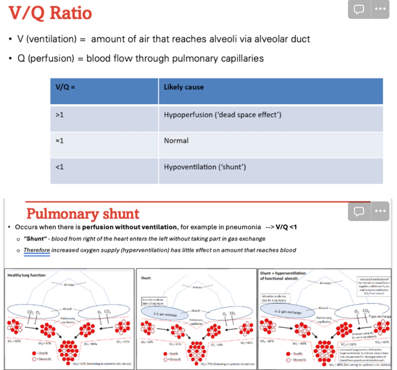 What would a V/Q ratio show in pneumonia?
