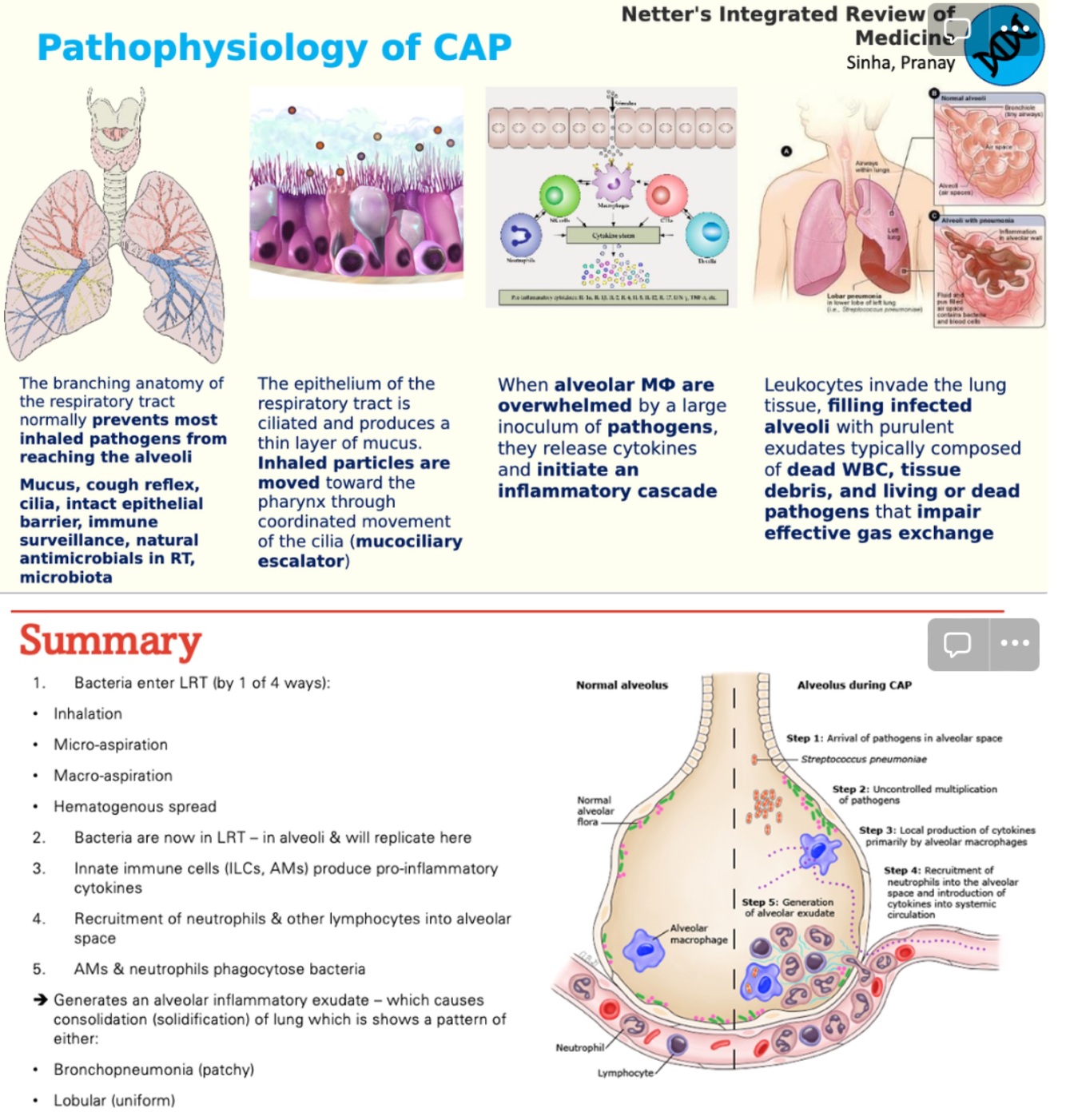 What is the pathophysiology of pneumonia?