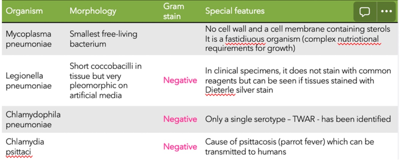 What are the atypical organisms that cause pneumonia?