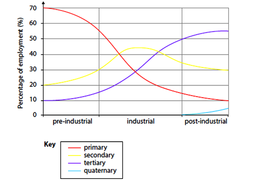 Describe how a country may change moving through the Clark Fisher Model.