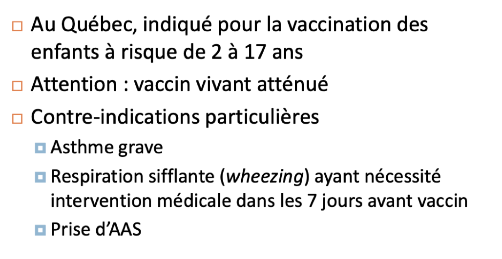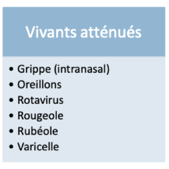 Vaccin intranasal = vivant atténué