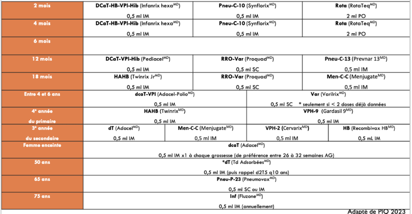 DCaT-HB-VPI-Hib: Calendrier spécial