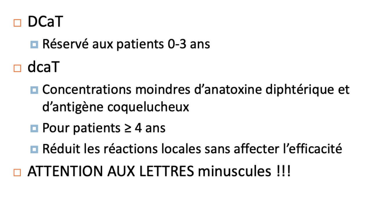 Majuscule = plus de concentration d’anatoxine diphtérique et antigène coquelucheux