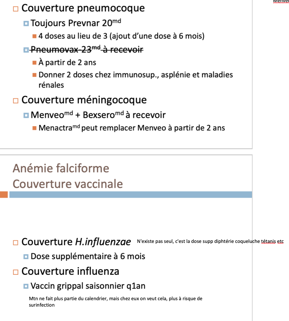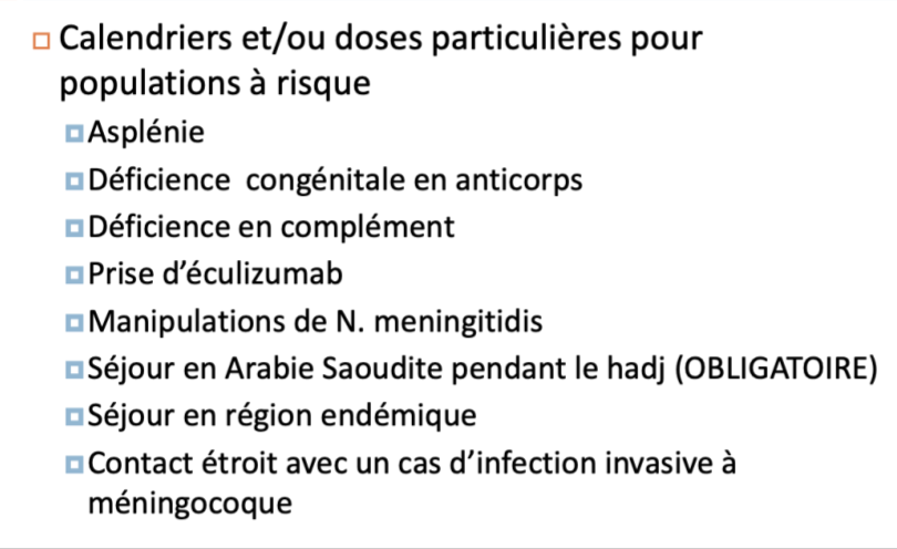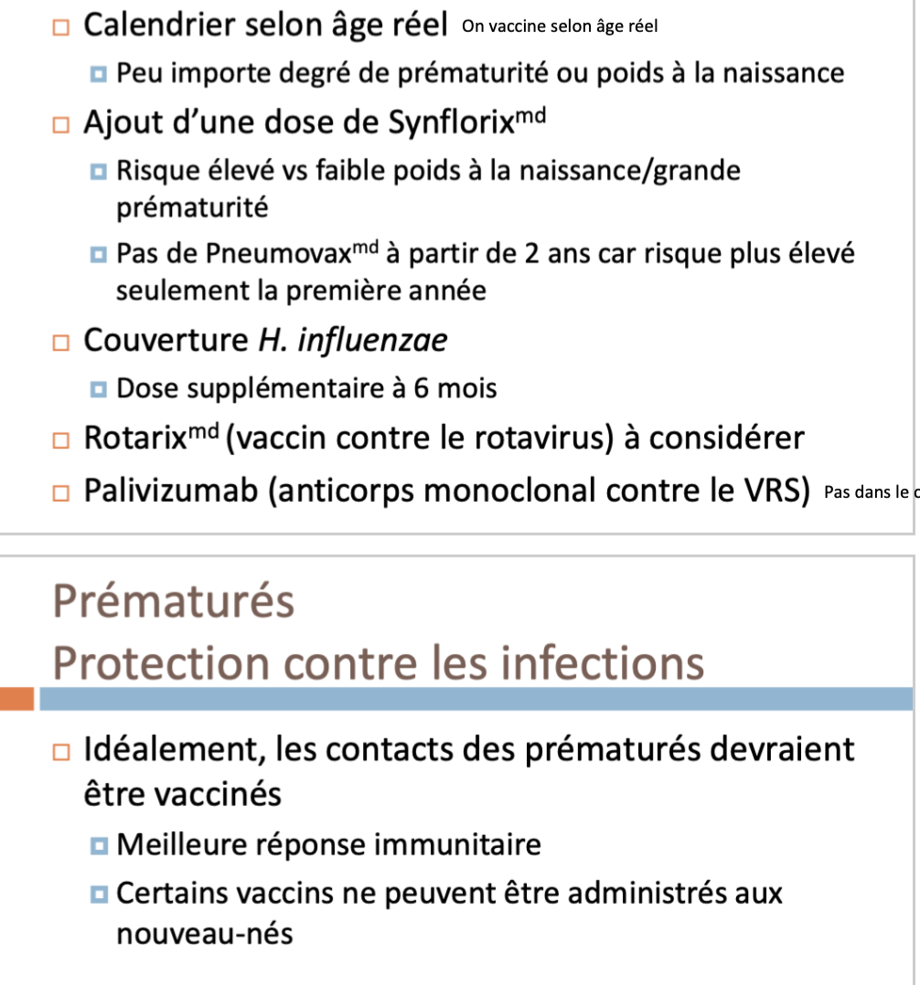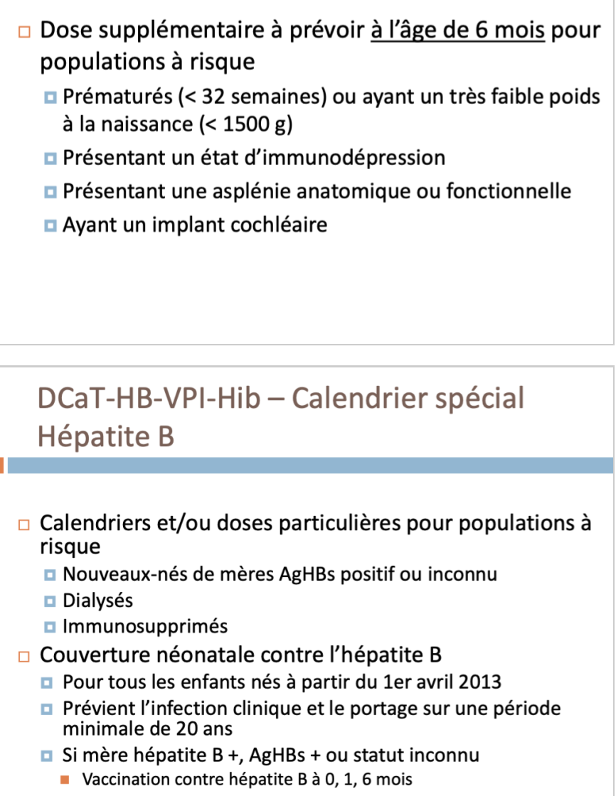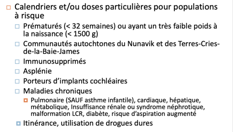 Pneumocoque: calendriers ou doses particulières supp pour ces populations, en particulier prématurés, immunosupprimés et aspléniques (question d’examen!!!!!!!!!!!!!!!!!)