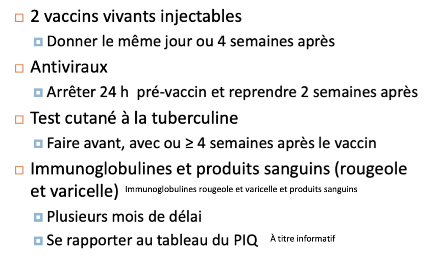 Vaccins vivants: interactions