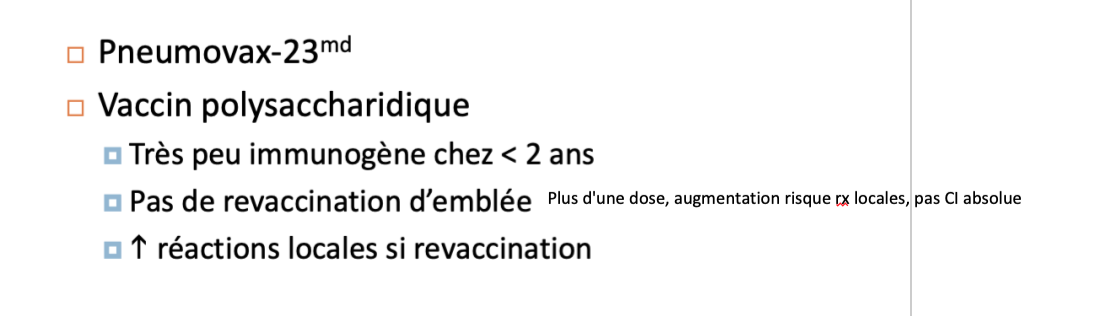 Polysaccharidique: ON NE DOIT PAS DONNER CHEZ LES < 2 ANS CAR PAS VRM EFFICACE