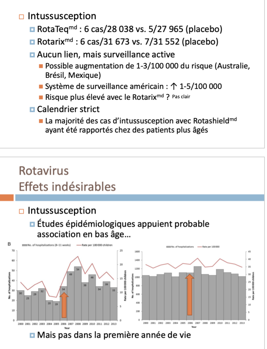 Majorité des cas intussu sont chez pts plus âgés, vaccin eu plus tard, c’est pk on le donne tôt (voir diapo précédente)