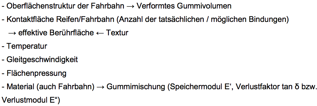 Hysteresereibung: entsteht durch die Gummiverformung beim Gleiten des Gummis über die Rauheitsspitzen der Fahrbahn