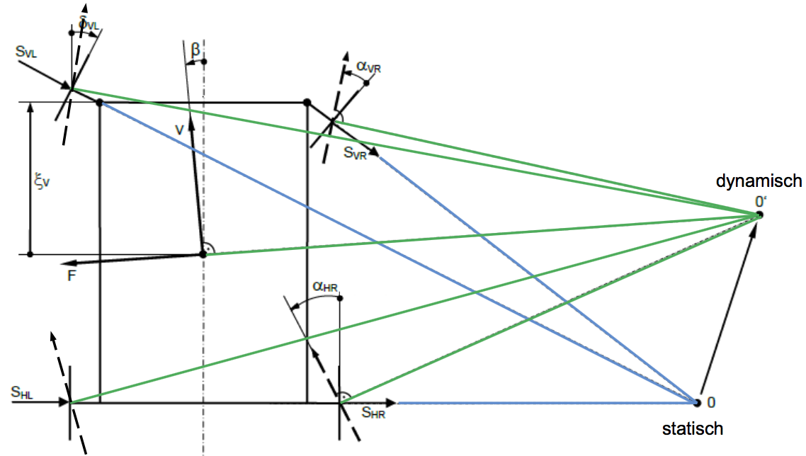 Beachte: Kurvenfahrt bei v > 0 → Fliehkraft → Seitenkräfte → Schräglaufwinkel