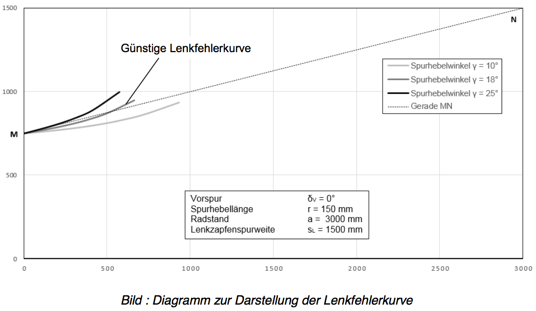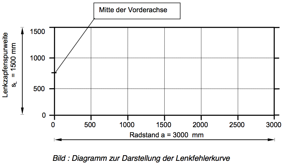 Tragen Sie in das Bild die Sollgerade ein, auf der die relevanten Schnittpunkte liegen müssen, wenn die Lenkung keinen Lenkfehler aufweist.