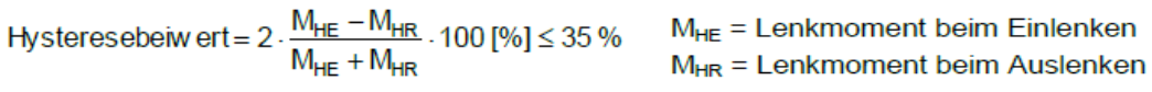 Wie berechnet sich der Hysteresebeiwert einer Servolenkung und welchen Wert darf er höchstens annehmen?