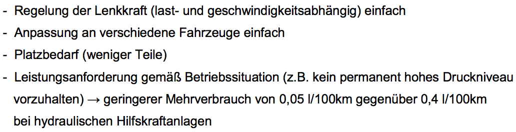 Nennen Sie drei wichtige Vorteile einer elektrischen Hilfskraftlenkanlage.