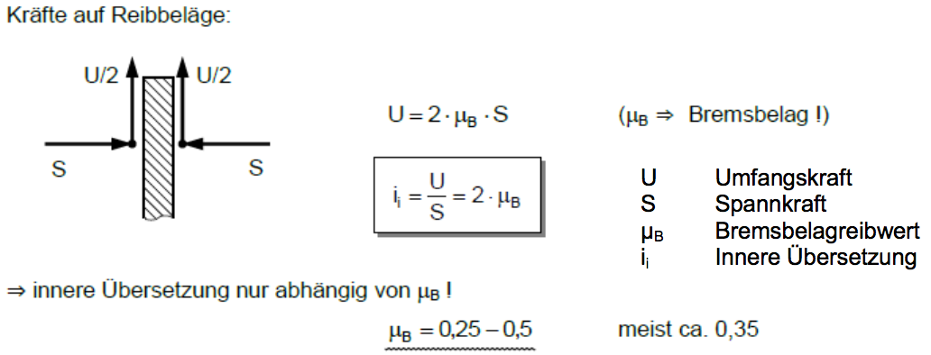 Leiten Sie die innere Übersetzung einer Scheibenbremse mit Hilfe einer Skizze her und benennen Sie die einzelnen Größen.