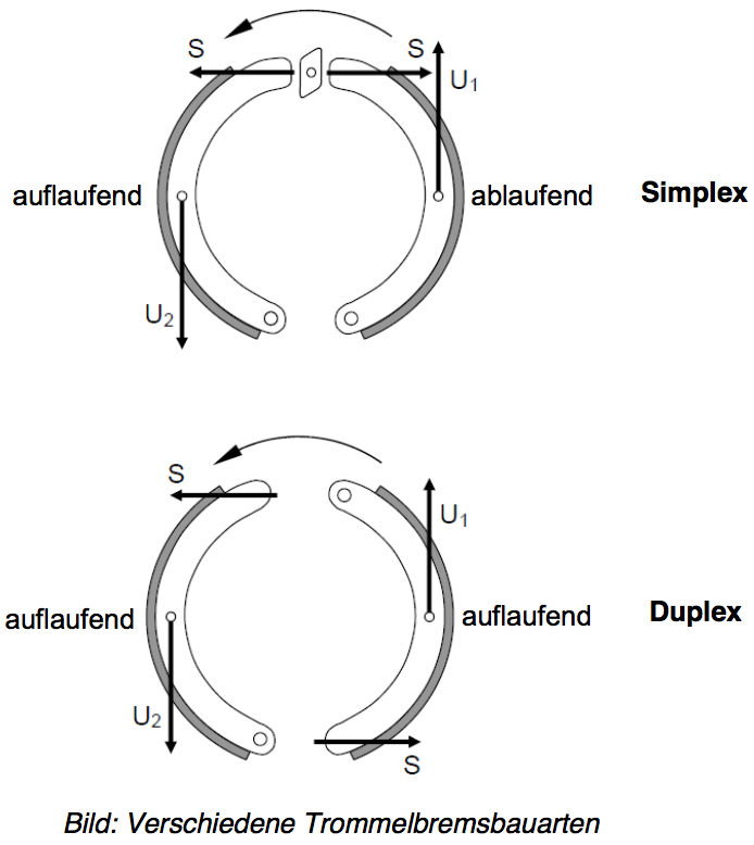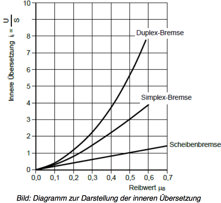Vergleichen Sie die innere Übersetzung mindestens zwei verschiedener Trommelbremsbauarten und einer Scheibenbremse in folgendem Diagramm.
