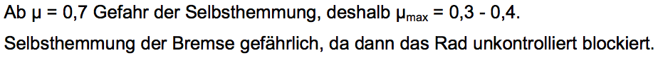 Ab welchem Belagsreibwert besteht bei einer Trommelbremse mit auflaufender Backe die Gefahr der Selbsthemmung? Welcher Belagsreibwert ist daher bei Trommelbremsen üblich?