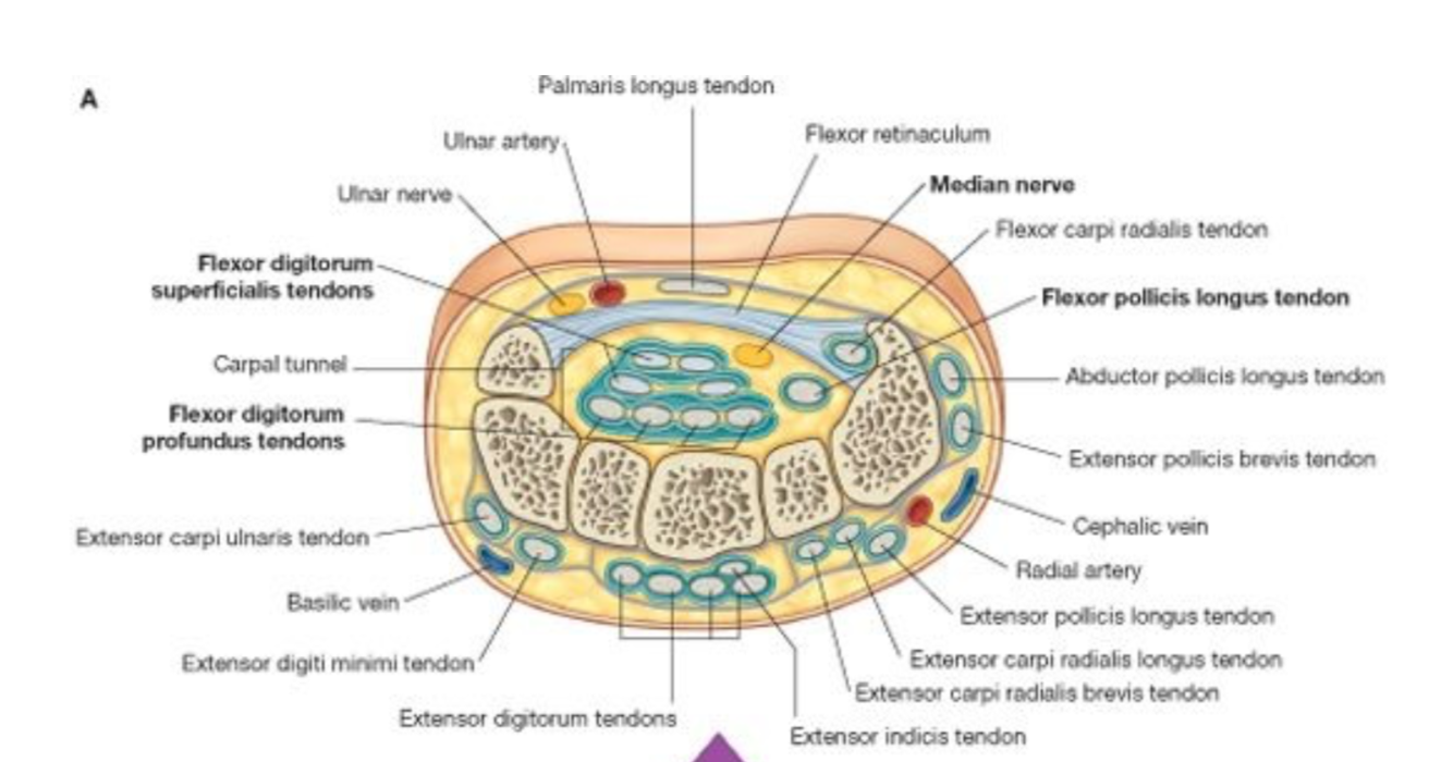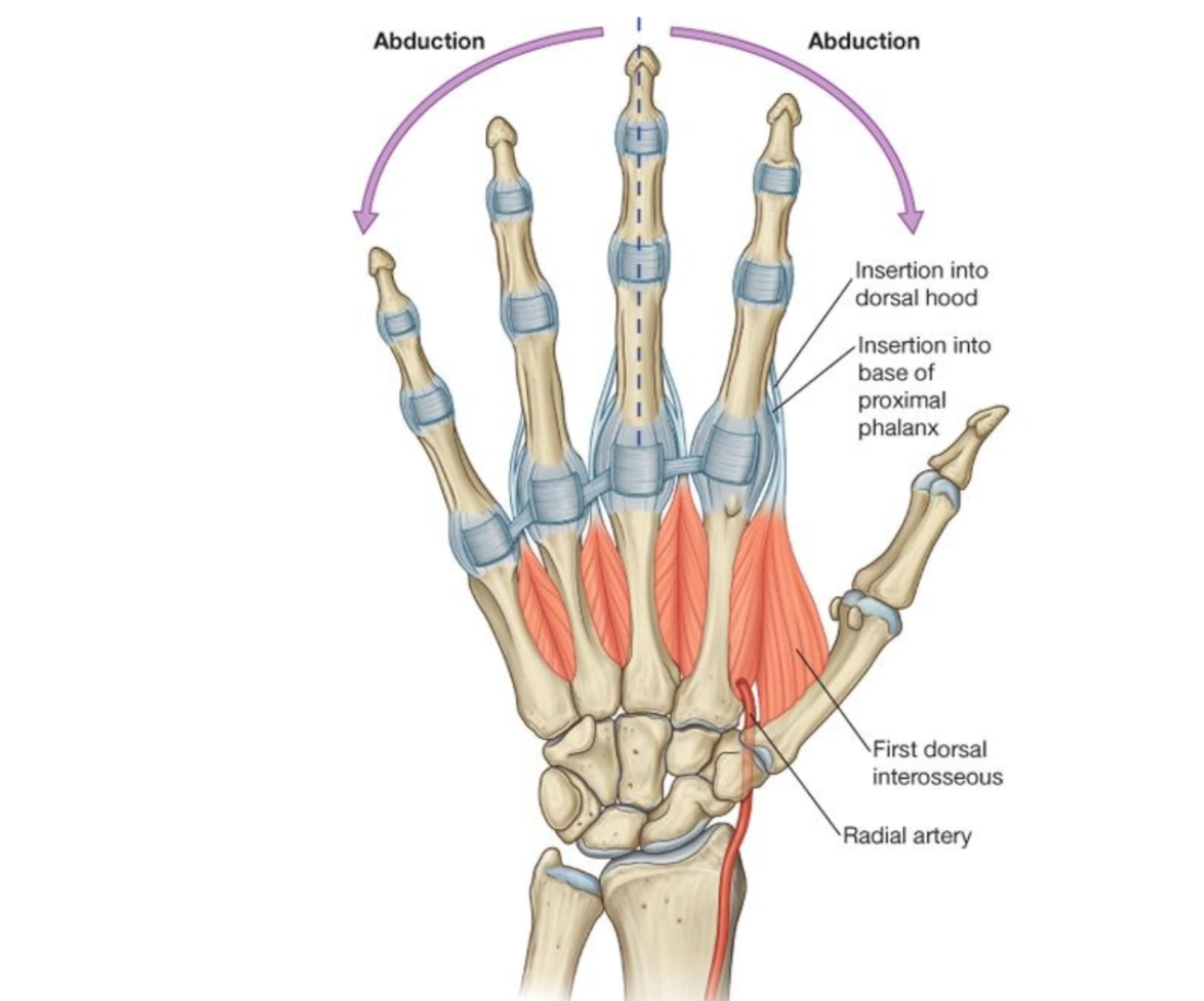Tubercle of scaphoid and trapezium to proximal phalanx