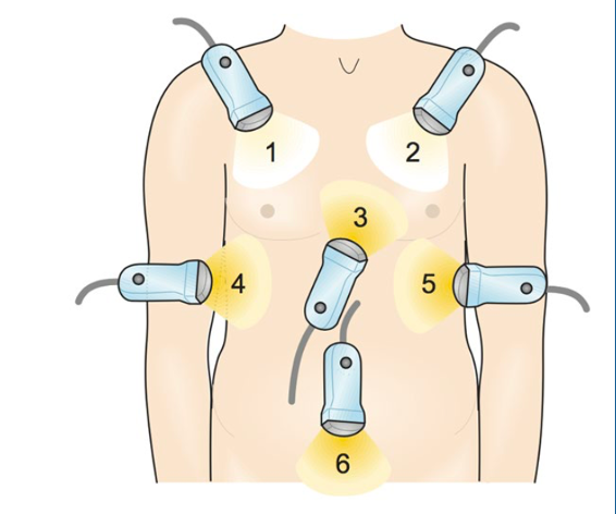 Nævn de fokuserede spm ved basal Extended Focused Assessment with Sonography for Trauma (eFAST):