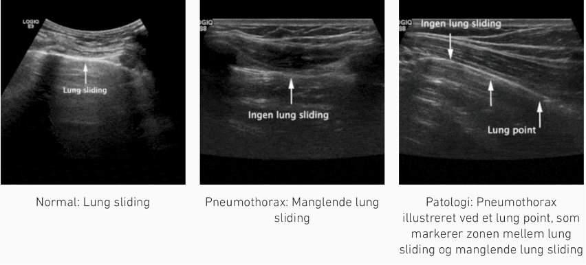 Zone 1 og 2 (Hemithorax anteriort [højre + venstre]): pneumothorax eller pleuraansamling