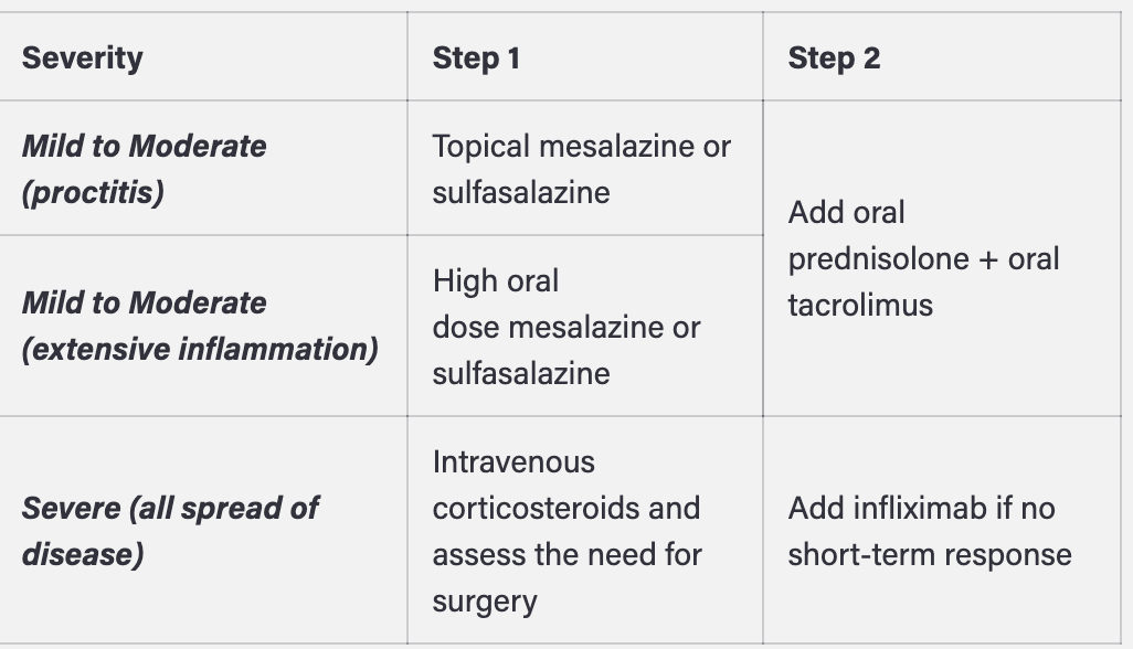 Describe the step wise approach for inducing remission in UC?