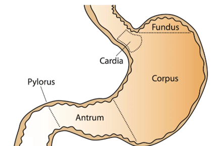 Vilka typer av sekrerande celler finns i körtlar i corpus och fundus?