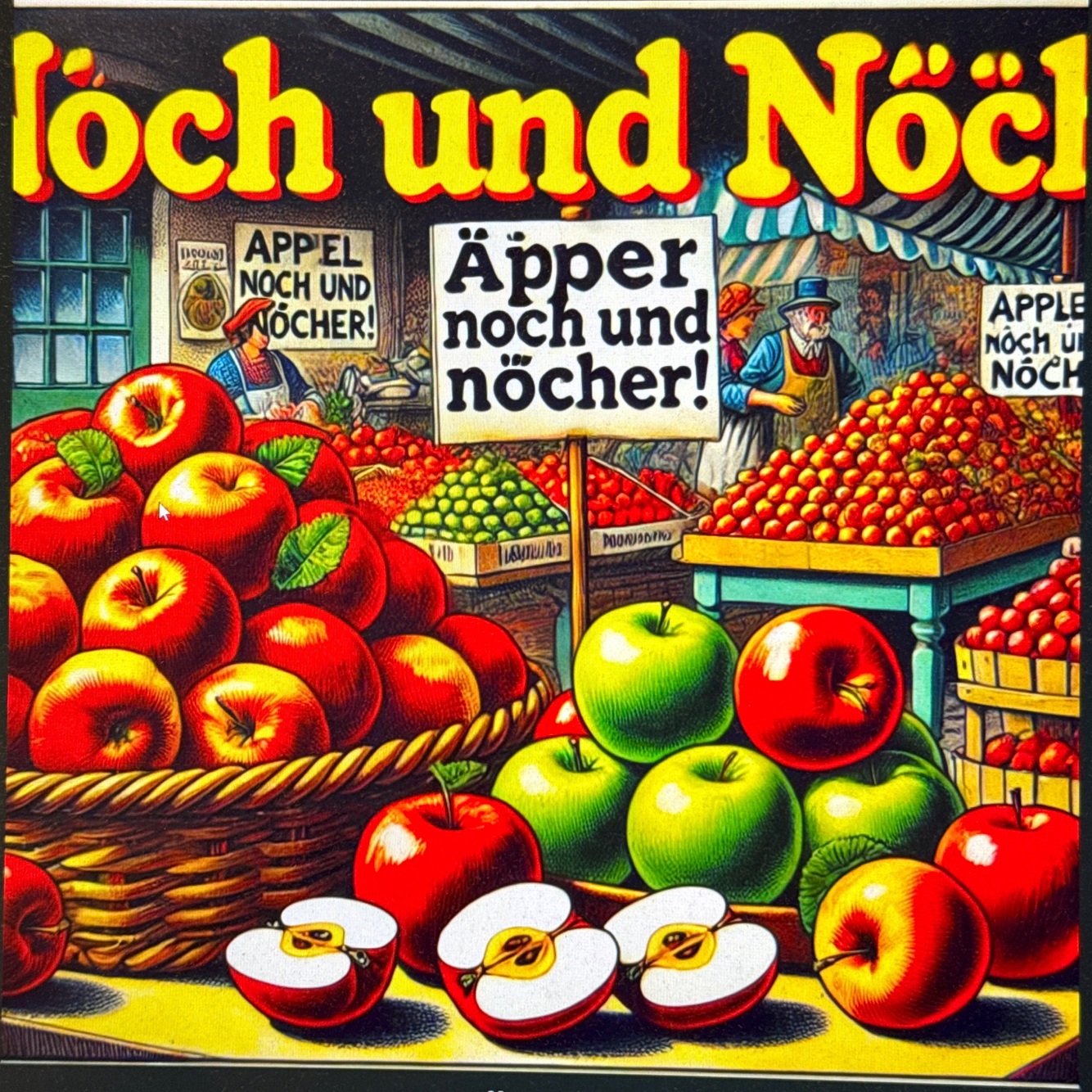 “Auf dem Wochenmarkt gibt es Äpfel noch und nöcher.”