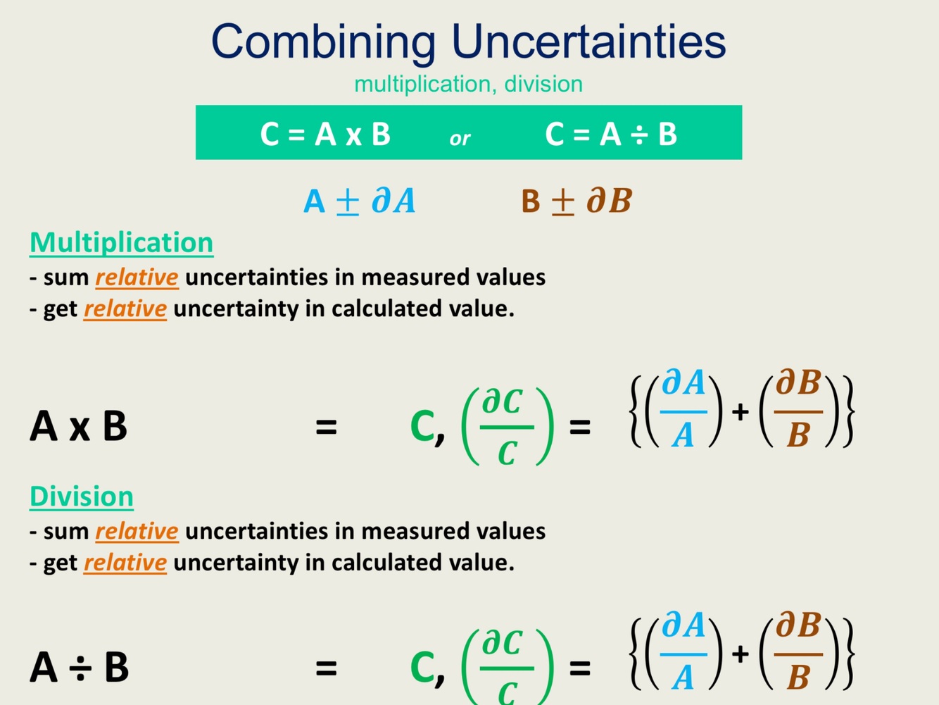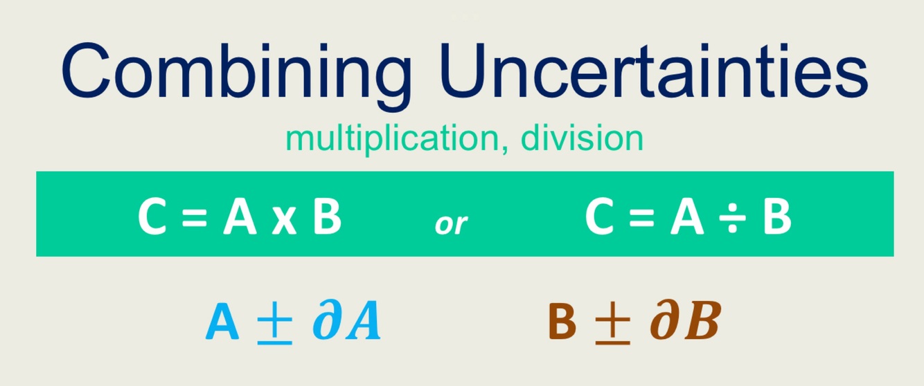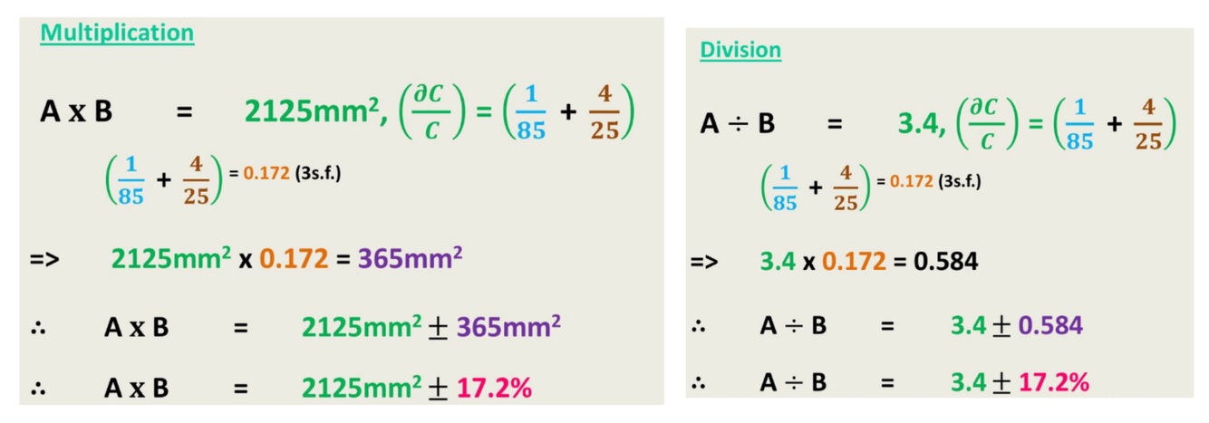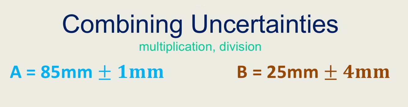Calculate the absolute and percentage uncertainty of AB and A/B