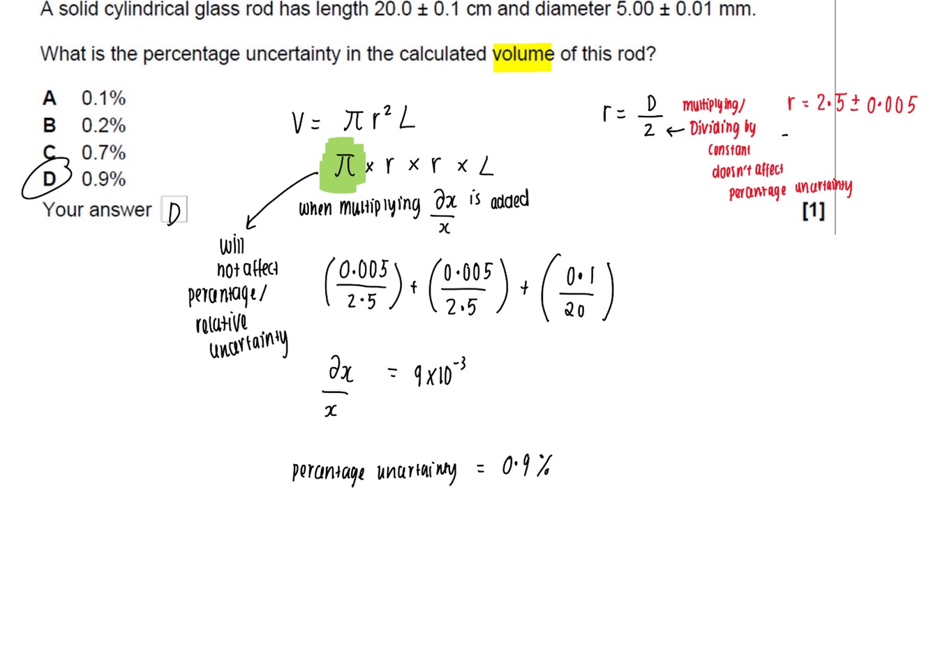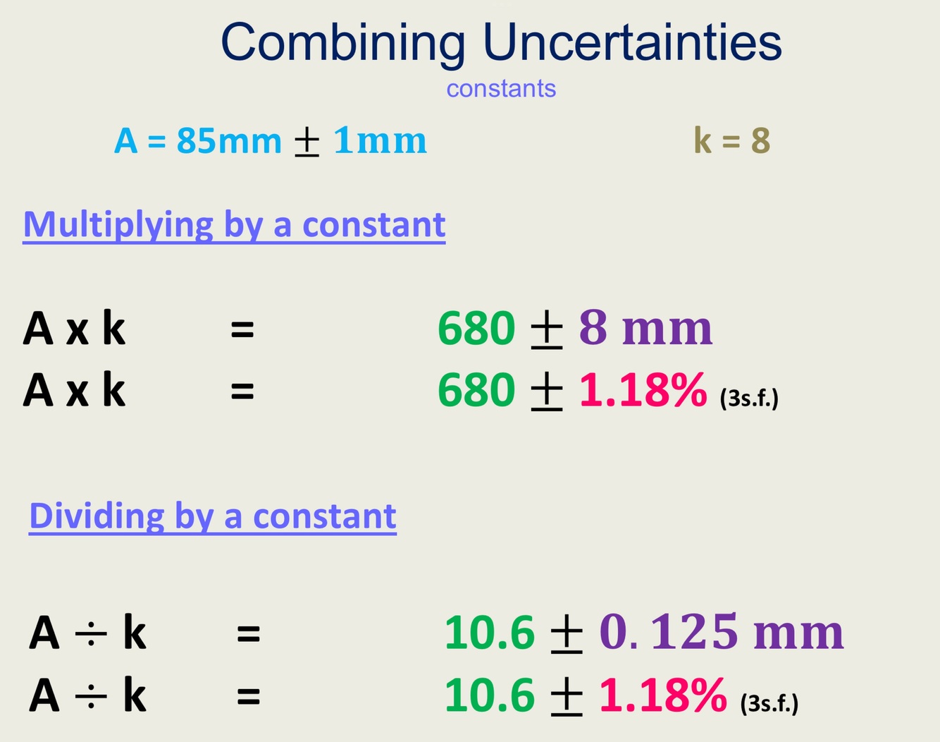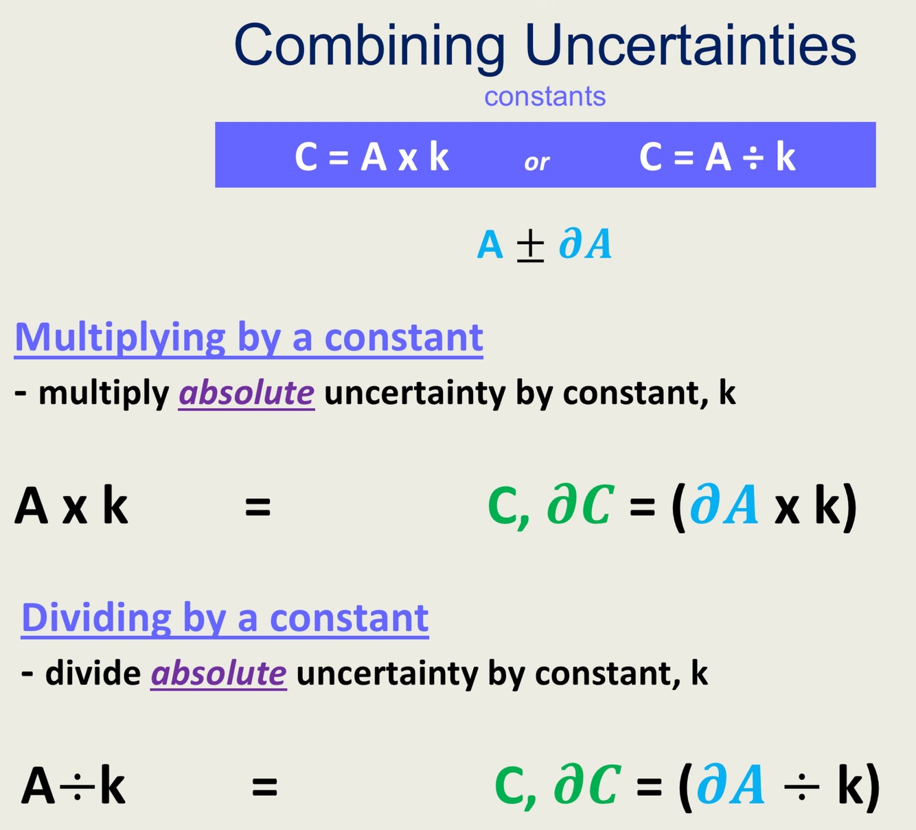what do you do the uncertainity when multiplying or dividing by a constant?