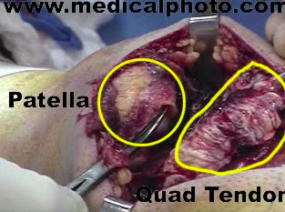 Quadricepsseneruptur. Må teste for ekstensjonsevne. partielle skader med intakt ekstensjonsevne forekommer.
