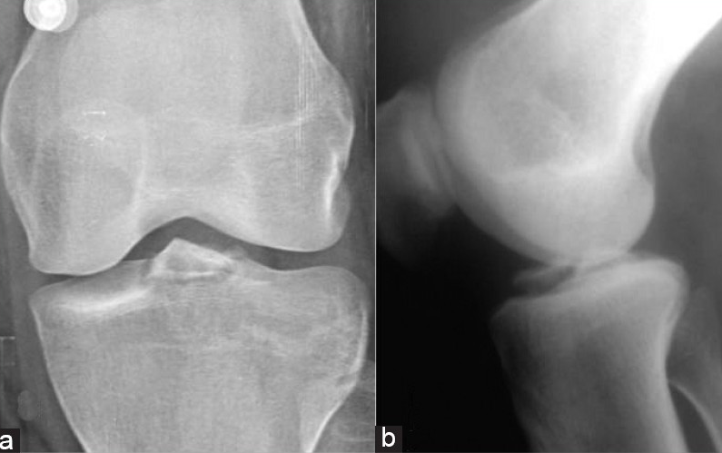 Avulosjon av korsbåndsfestet med emminentia intercondylaris og bruskskader.