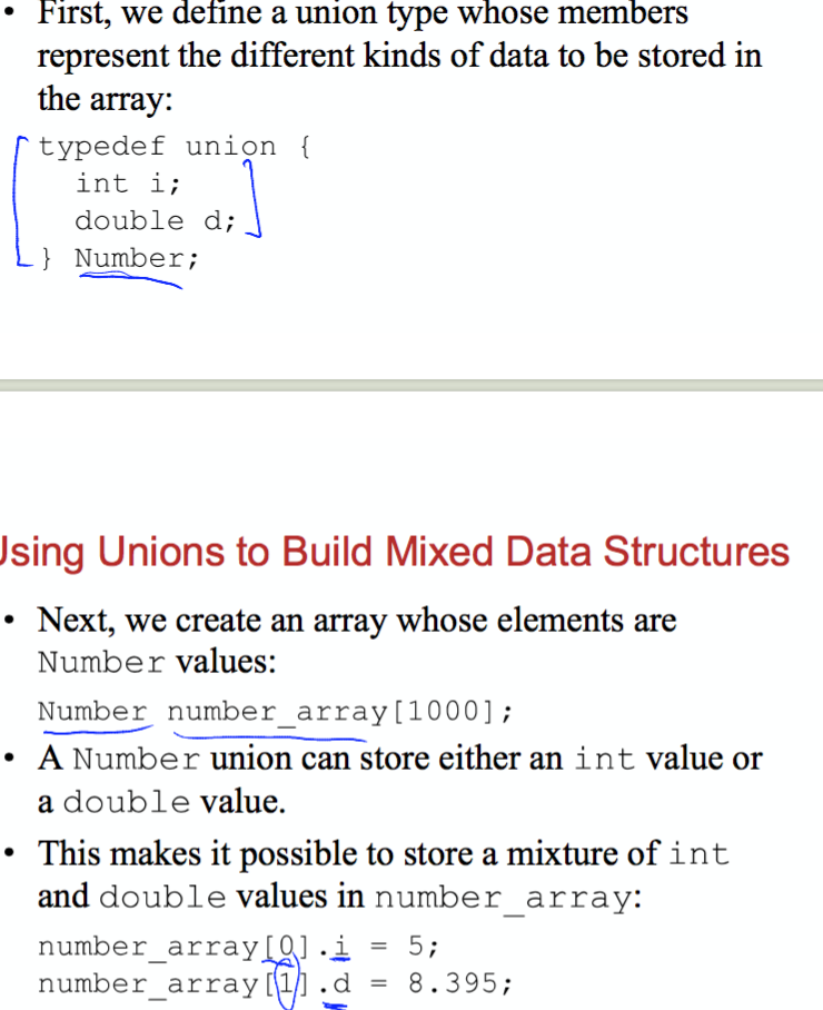 If we needed an array whose elements are a mixture of int and double values, how would we define the code for this union and array?
