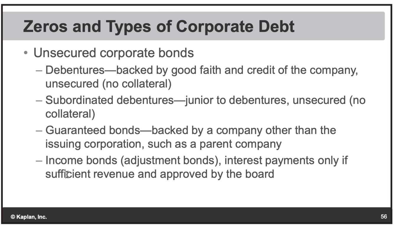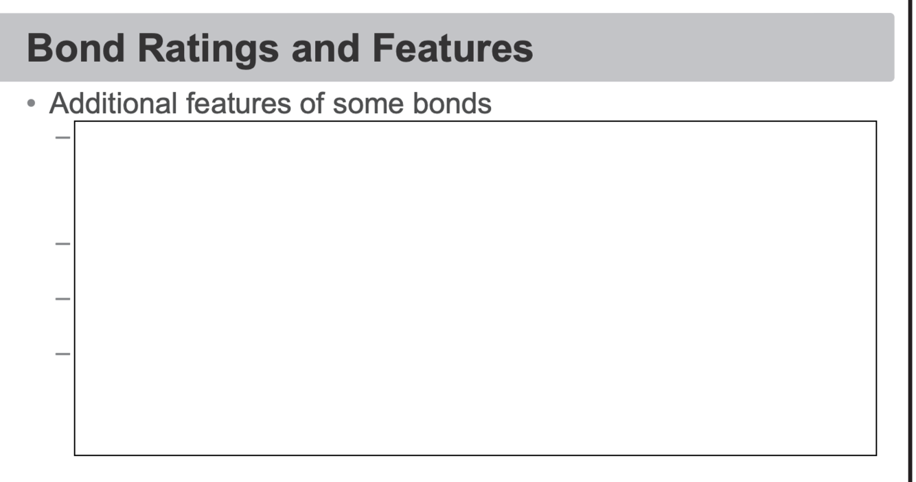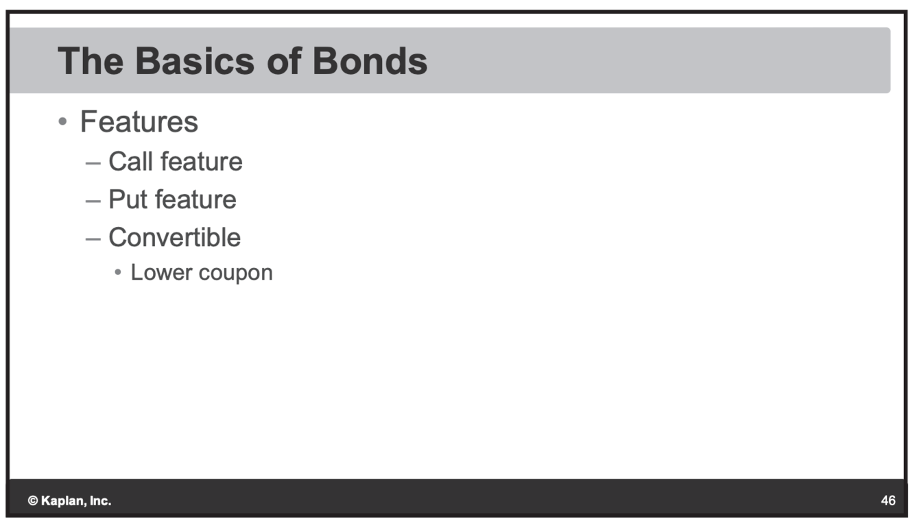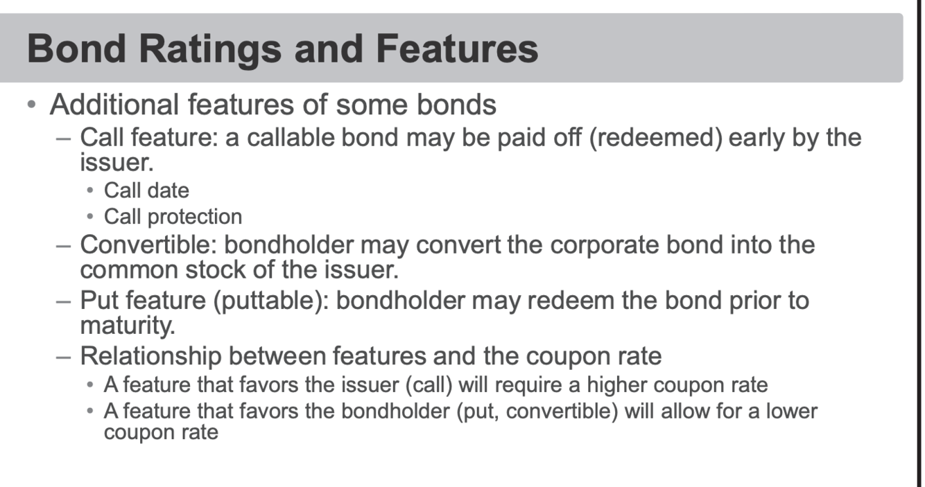 Convertable: Can convert bond to stock. Pays a lower coupon.