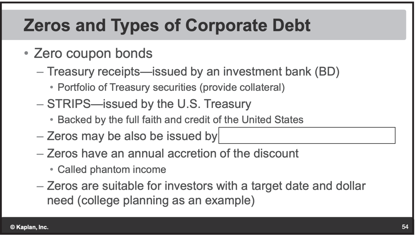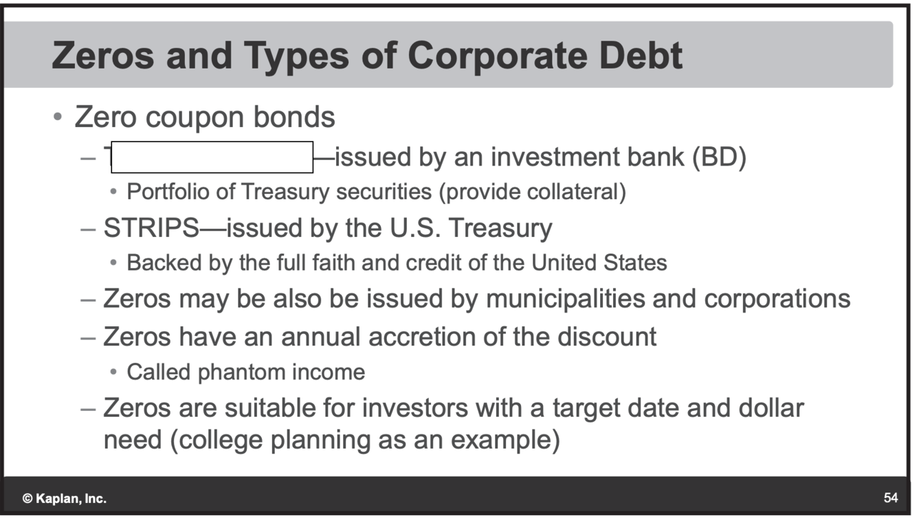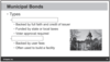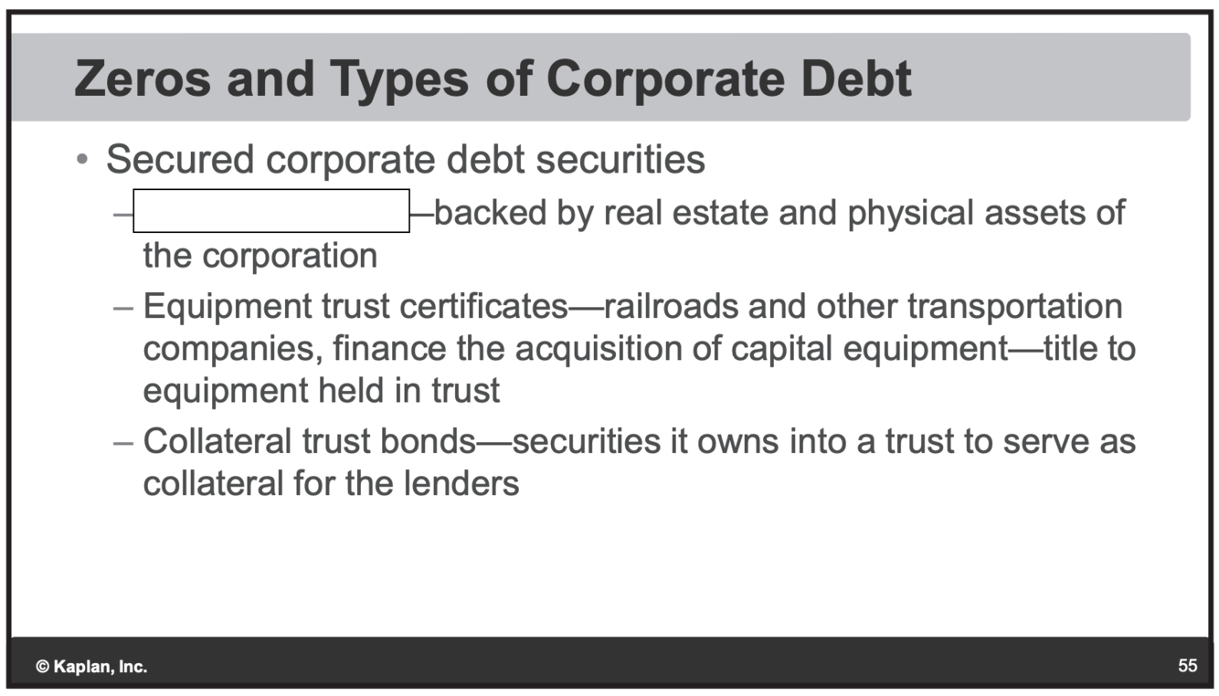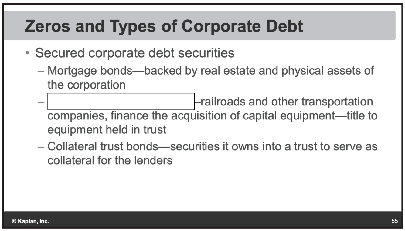 Convertable: Can convert bond to stock. Pays a lower coupon.