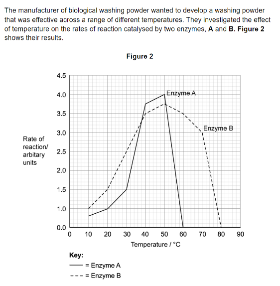 The manufacturer concluded that enzyme B would be the best enzyme to use. Use the results from Figure 2 to evaluate this conclusion.