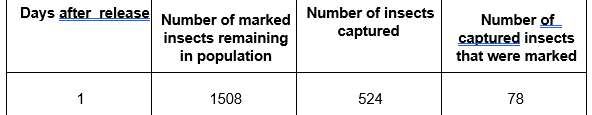 (d) Calculate the number of insects on this island 1 day after release of the marked insects.