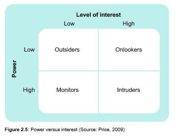 Explain Price (2009) stakeholder analysis - POWER vs. INTEREST