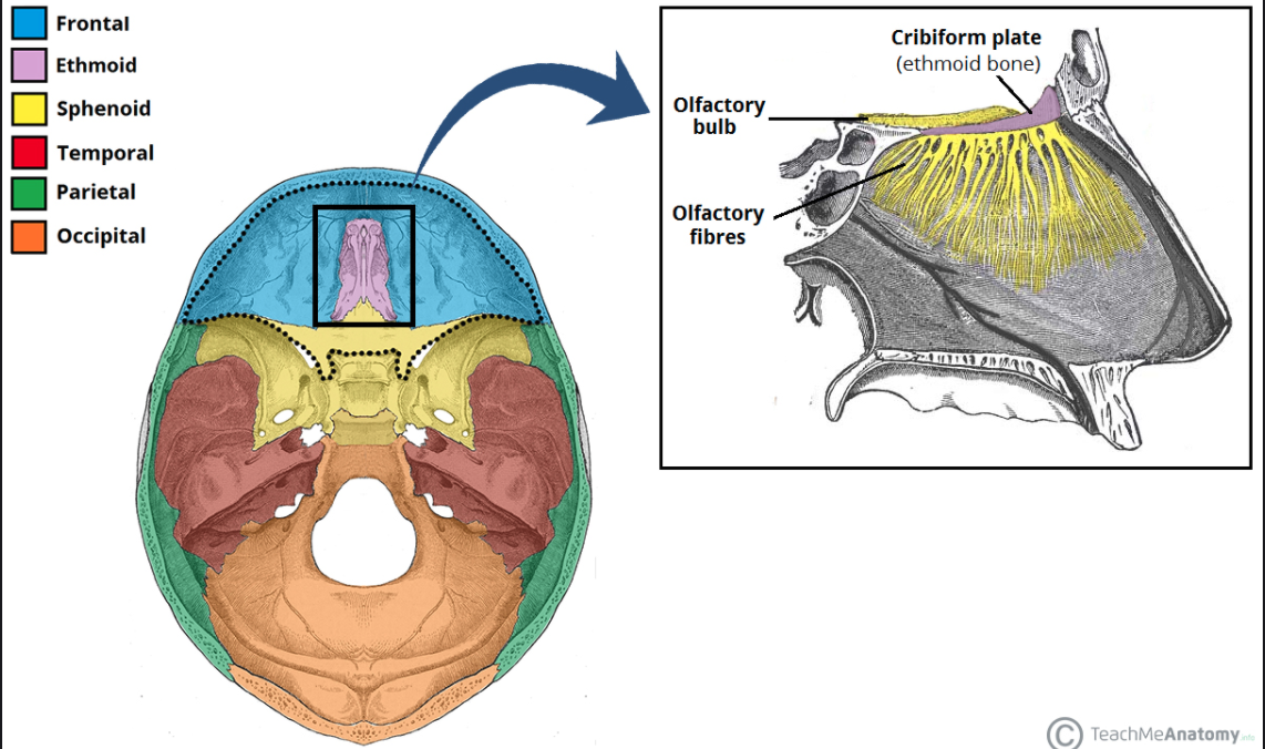 the cribriform plate of the ethmoid bone