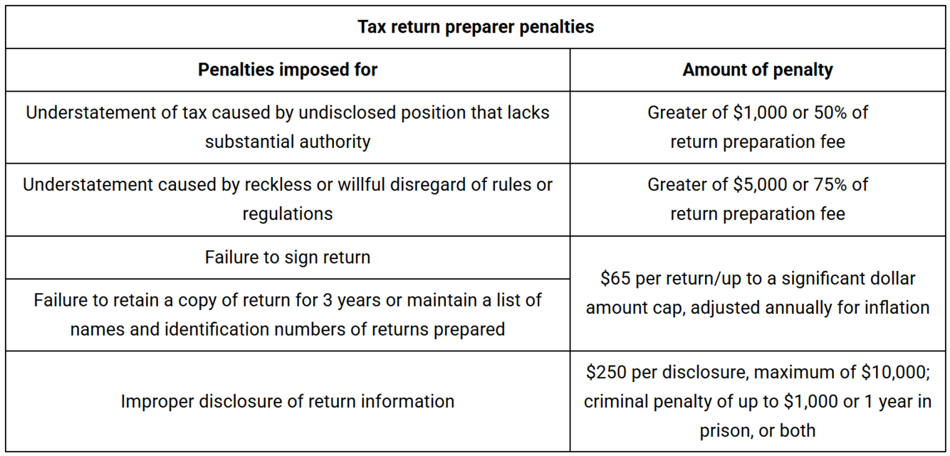 Tax return preparer penalties