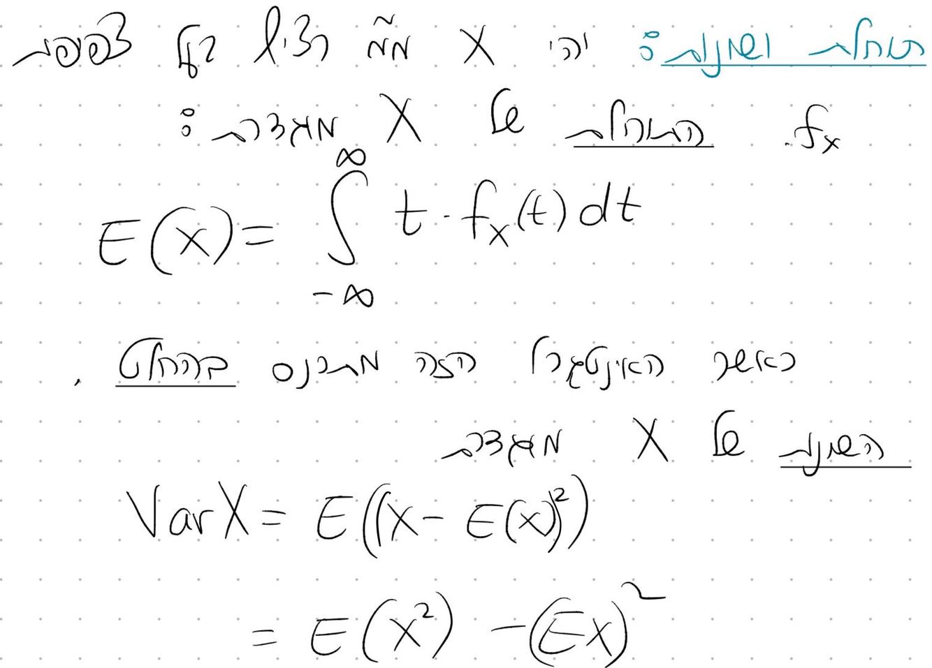 הגדירו: תוחלת ושונות של משתנה מקרי רציף