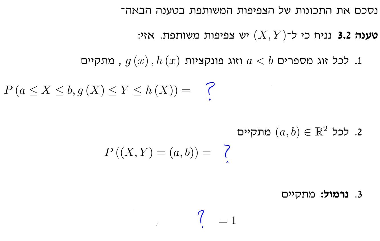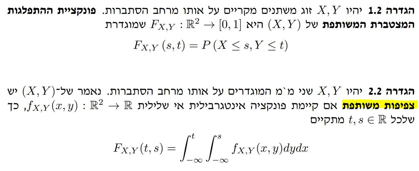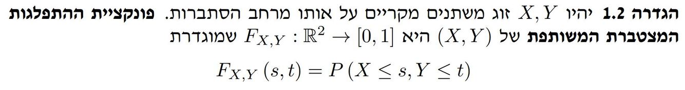 הגדירו: פונקציית התפלגות מצטברת משותפת.