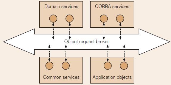 CORBA services support the requirements of distribution, such as a naming service and a transaction service.