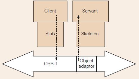 An ORB is known as middleware because it is located between a client and the servant objects it wishes to invoke.