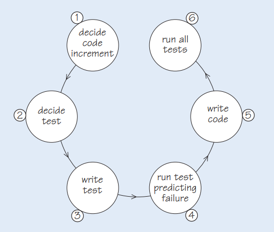 What are the 6 steps of the test-driven development (TDD) cycle?
