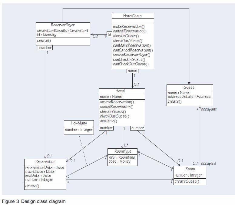 The association expresses the fact that ReserverPayer objects are identified in the system through their id (assigned to them the first time they register and used to represent their value identity. The HotelChain object is linked to all ReserverPayer objects via this association, and will perform a mapping between the value and object identities of ReserverPayer objects in order to be able to reference them.