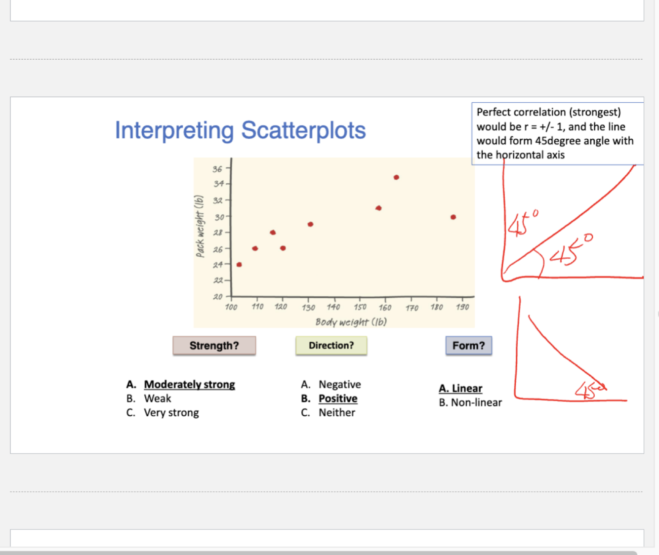 examining the form, direction, and strength of the association. We look for an