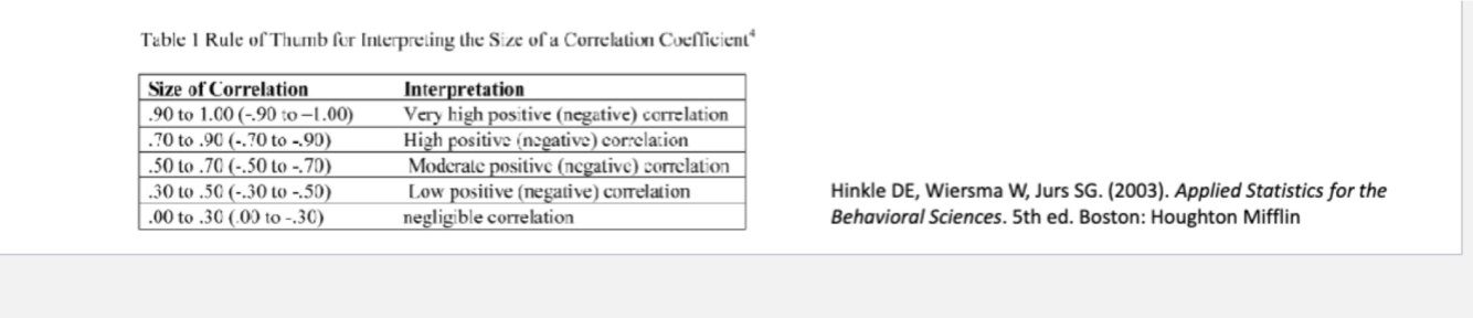 * Rule of thumb to determine the strength of a correlation (Visual