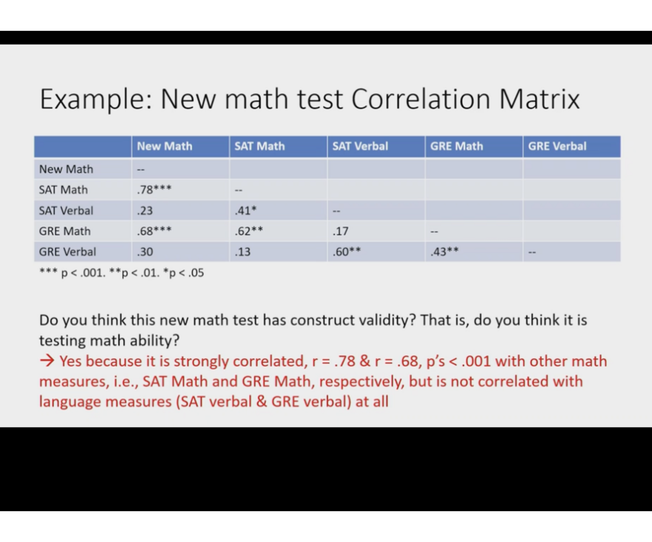 * .7 and above are considered “high” correlation