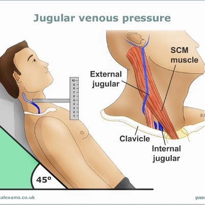 Low output HF leads to a reductio in the volume of blood ejected with each beat, leading to a rise in central venous pressure. This blood backs up into the vena cava, raising the pressure in the jugular vein subsequently.
