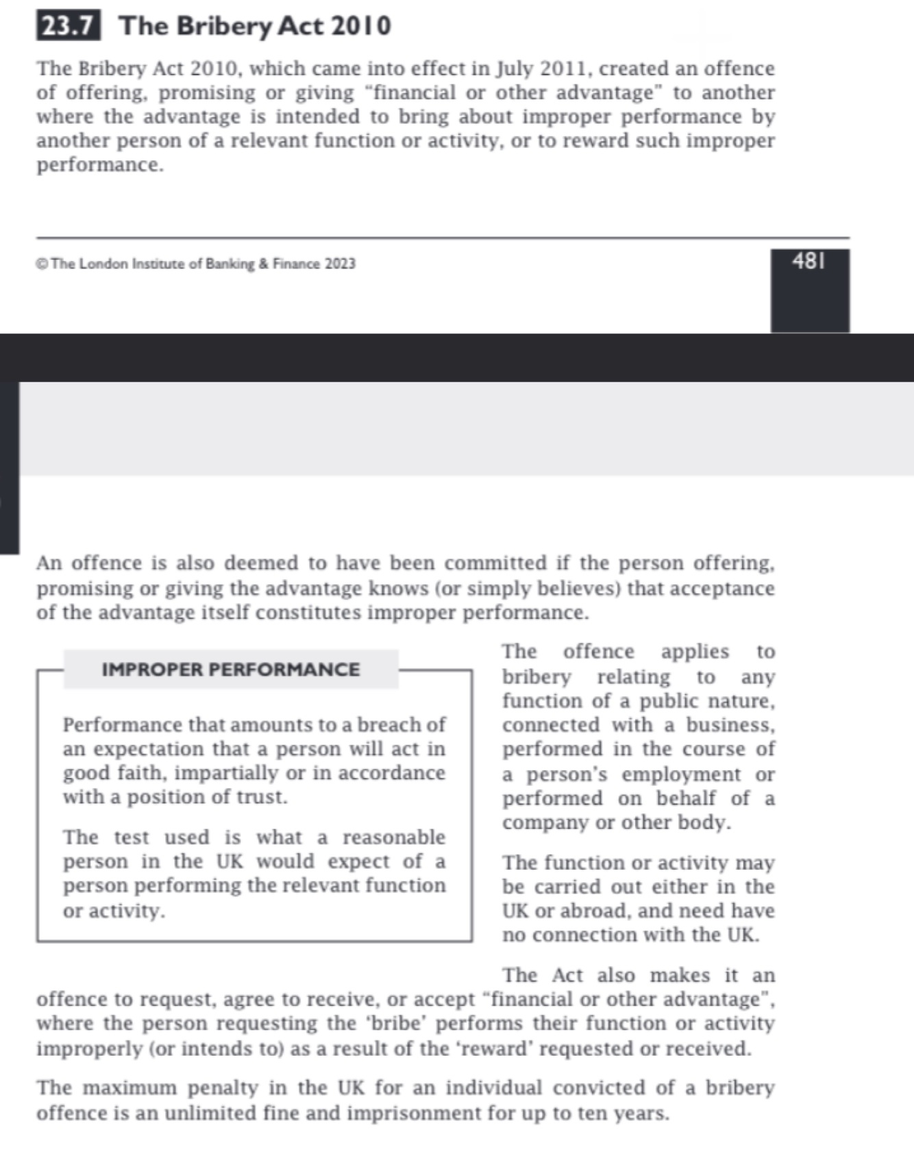 What is the max penalty if someone is convicted of ‘bribery’ under the bribery act 2010?