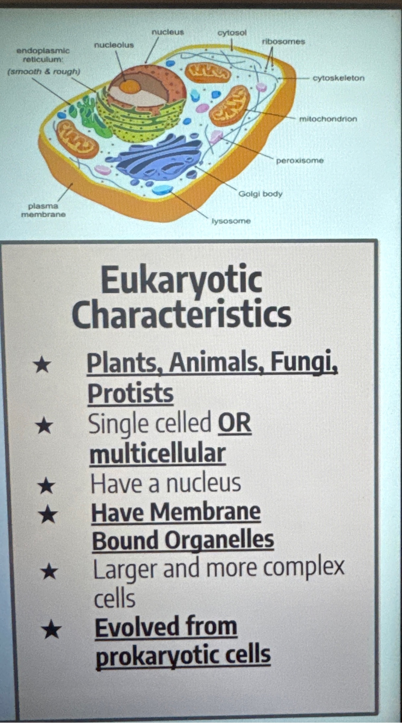 What are the characteristics of eukaryotes that aren’t in prokaryotes