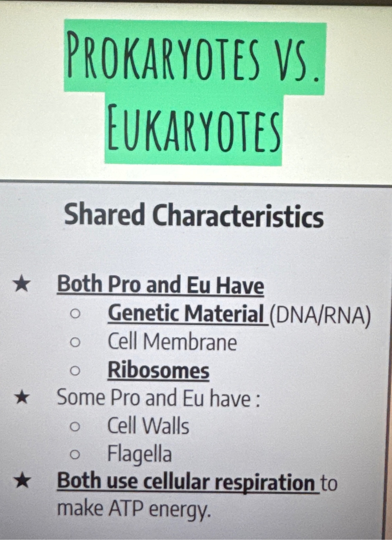 What are the shared characteristics of prokaryotes and eukaryotes